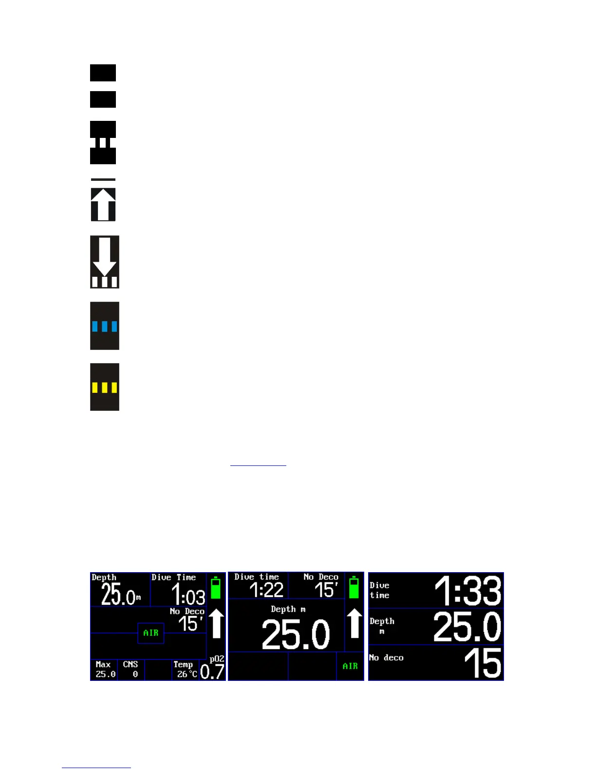 decompression-status graphic symbol shows arrow up. This is the symbol for free ascent to the