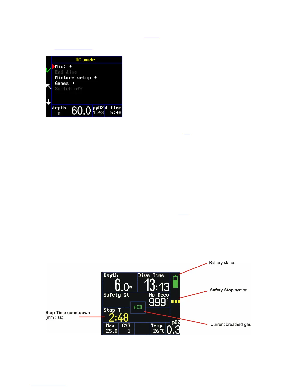 dashed line and the safety stop time starts a three-minute countdown in the lower left box in the