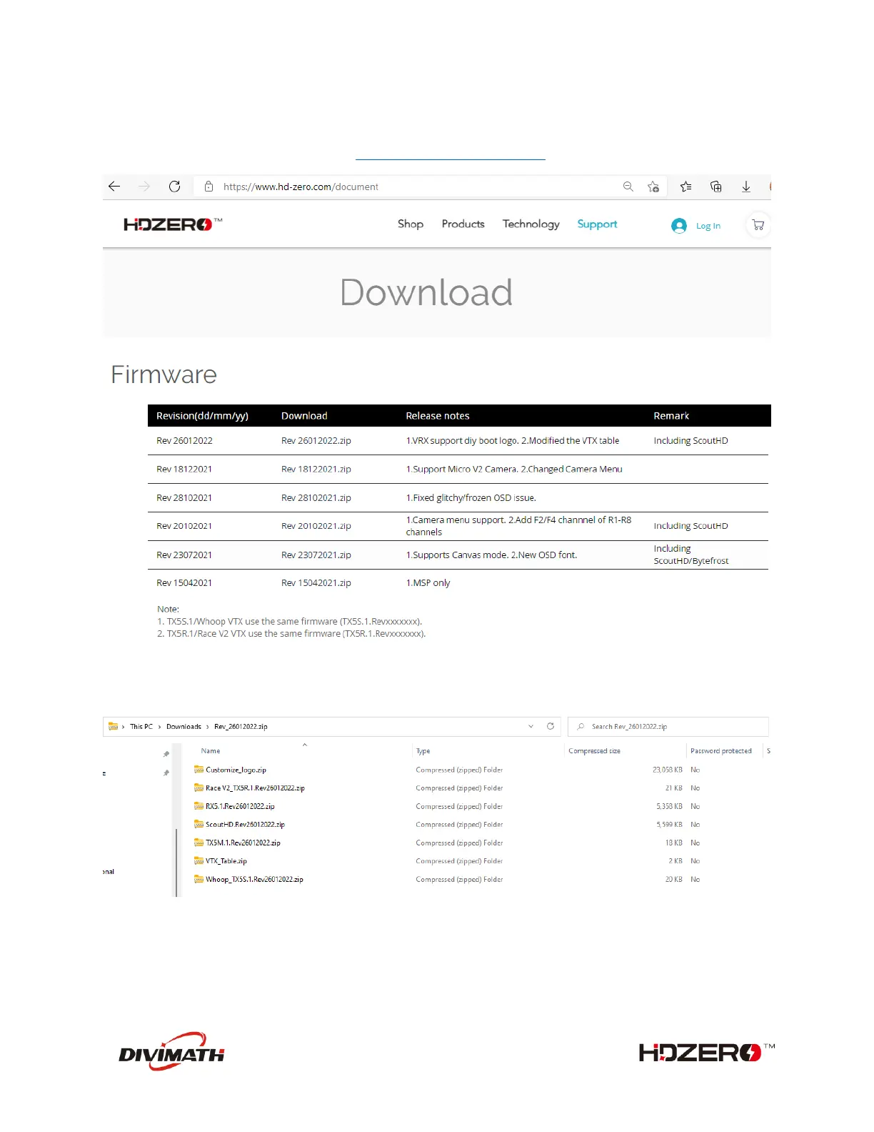 Each revision contains firmware for all the VTX and VRX. And revision number is formatted as