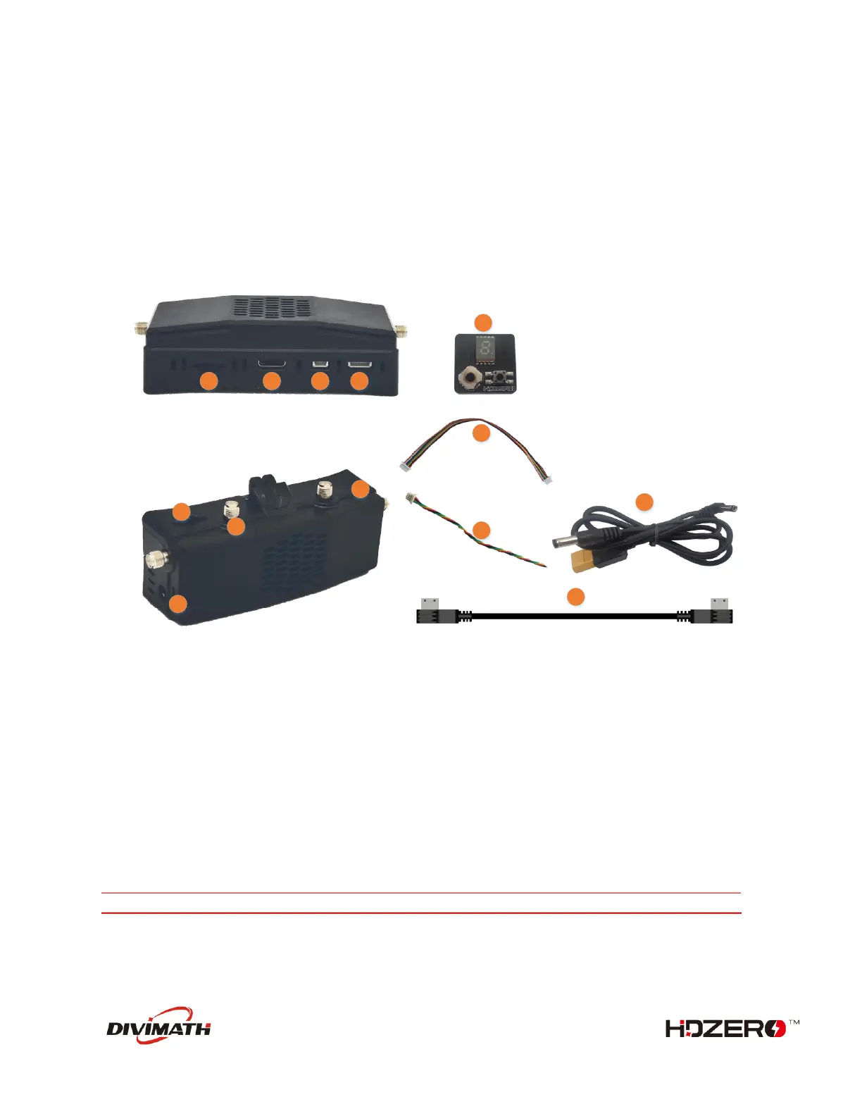 and outputs two DCs for goggle and VRX respectively. A mini HDMI cable ⑩ for connecting VRX and