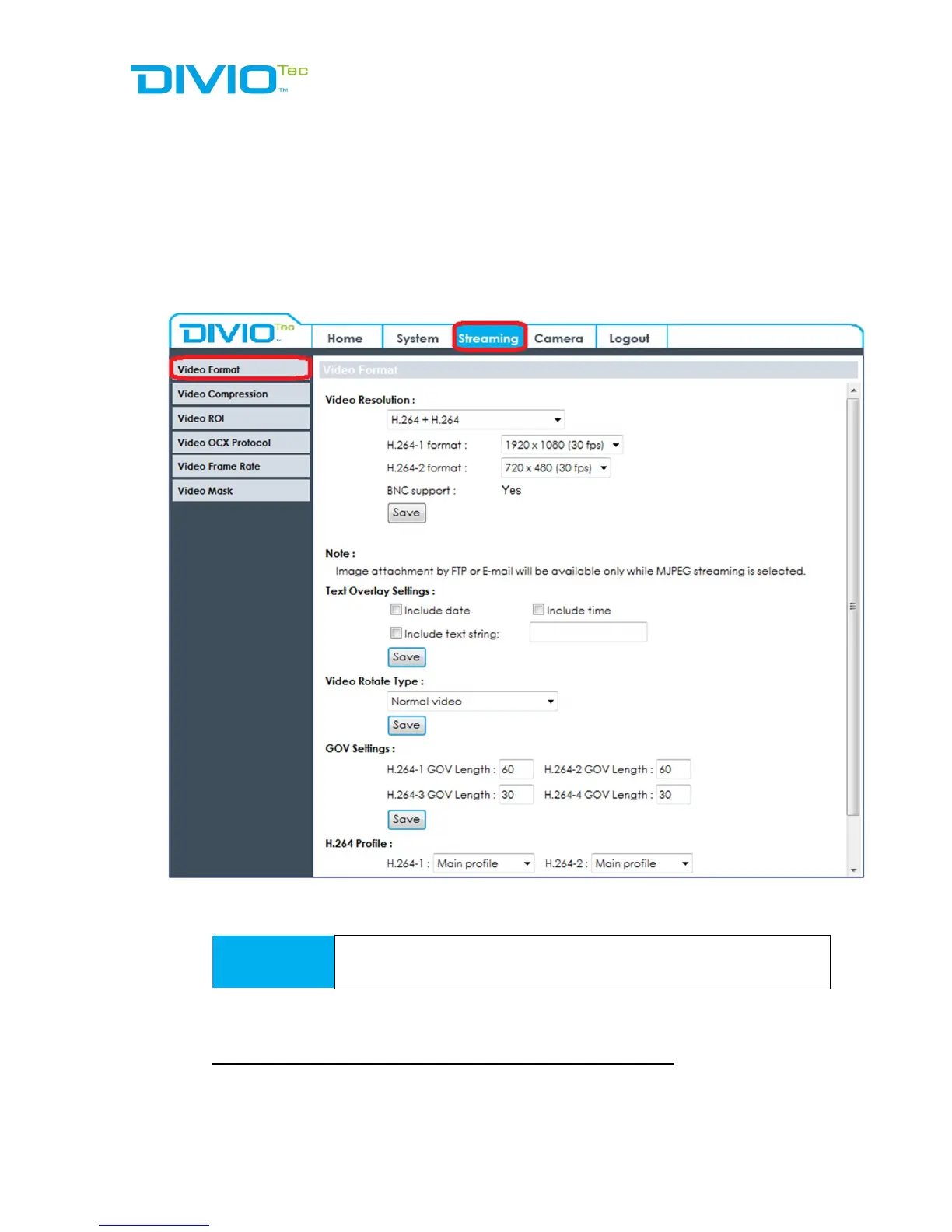 Users can setup video resolution on Video Format page of the user-friendly