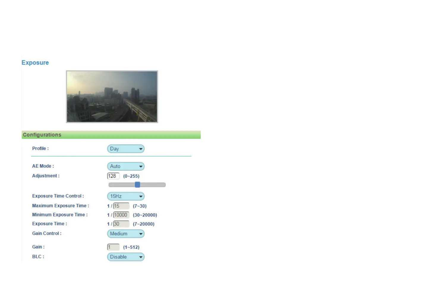 range is 1/7~1/30) and Minimum Exposure Time (the range is 1/30~1/20000)