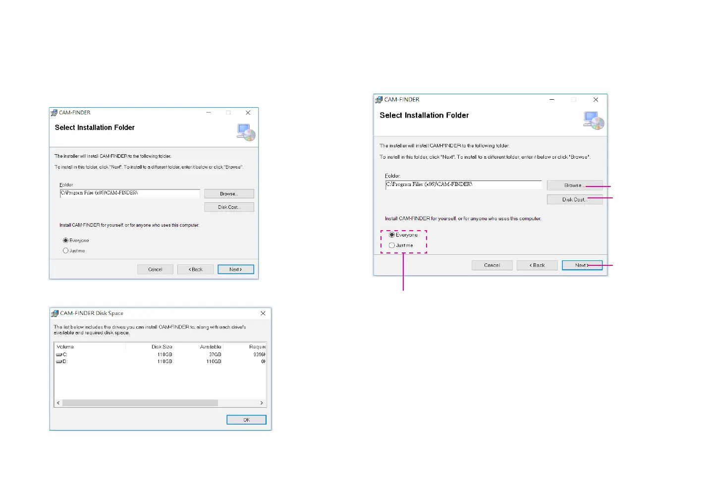 available and required disk space, please click on the Disk Cost button.