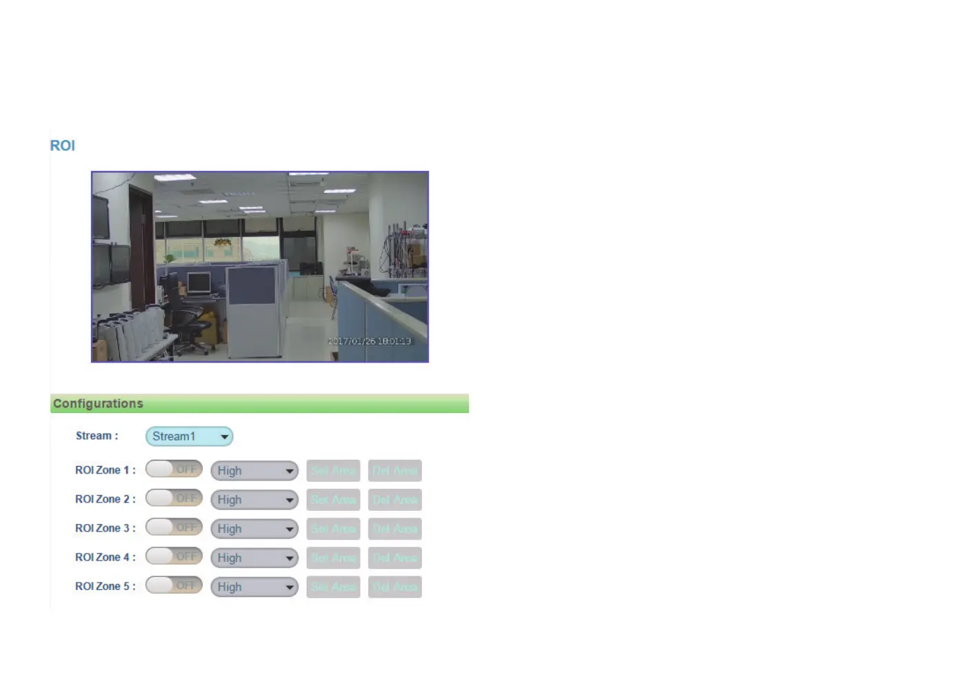 2. There are 5 ROI zones that can be configured (zone 1 ~ zone 5). Switch