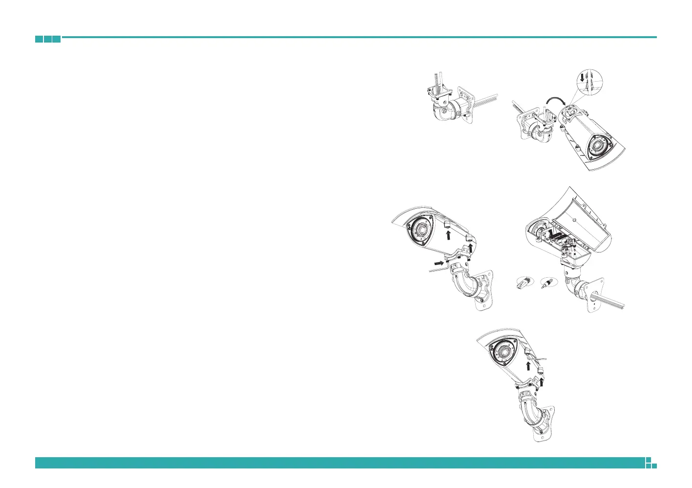 4. Open the camera’s top cover to access the wired cables. Install the RJ45