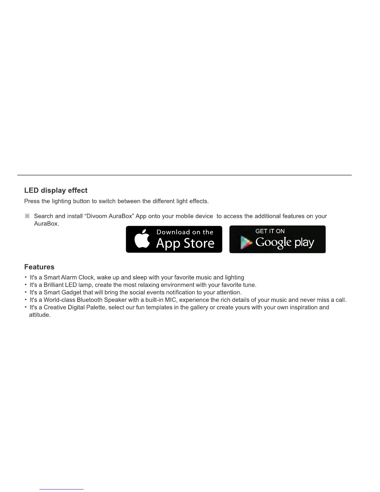 Divoom Aurabox - LED Display Effects and Key Features; Controlling LED Lighting Effects; AuraBox Key Functions Explained