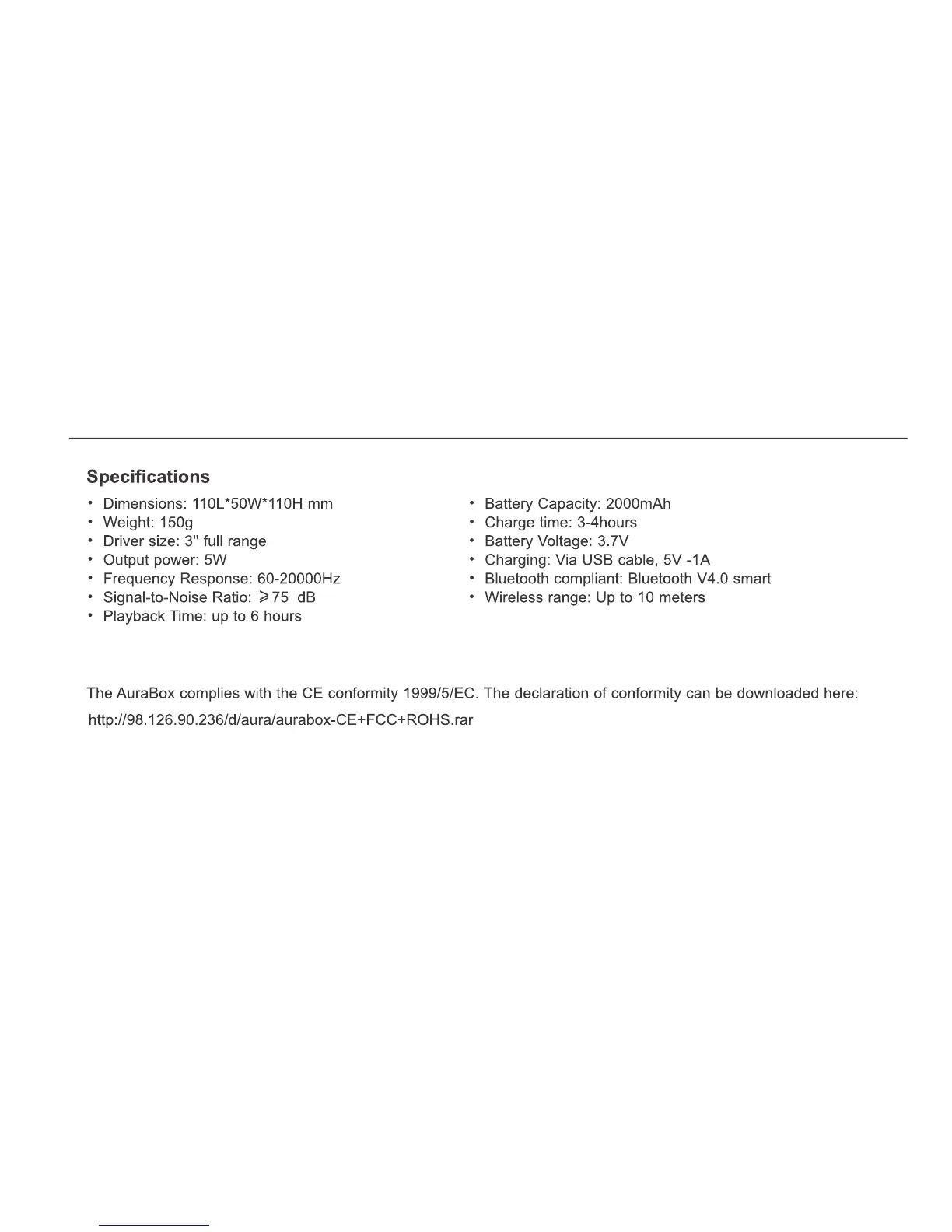 Divoom Aurabox - AuraBox Technical Specifications; Detailed AuraBox Specifications