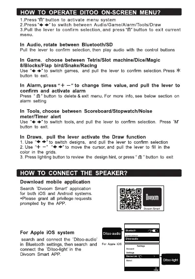 Divoom Ditoo - On-Screen Menu Operations; Menu Navigation and Modes