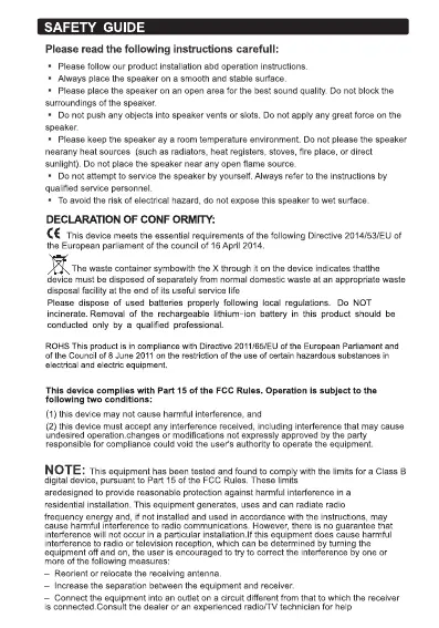 Divoom Ditoo - Safety and Regulatory Information; General Safety Precautions; Regulatory Compliance Statements