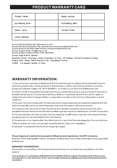 Divoom Ditoo - Product Warranty Information; Warranty Terms and Claims