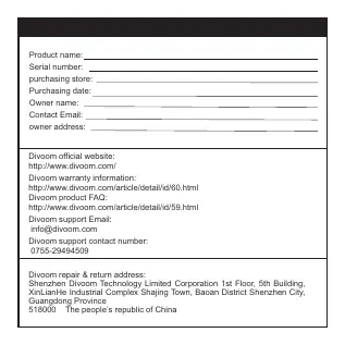 Divoom Espresso - Warranty and Support; Warranty Card Details