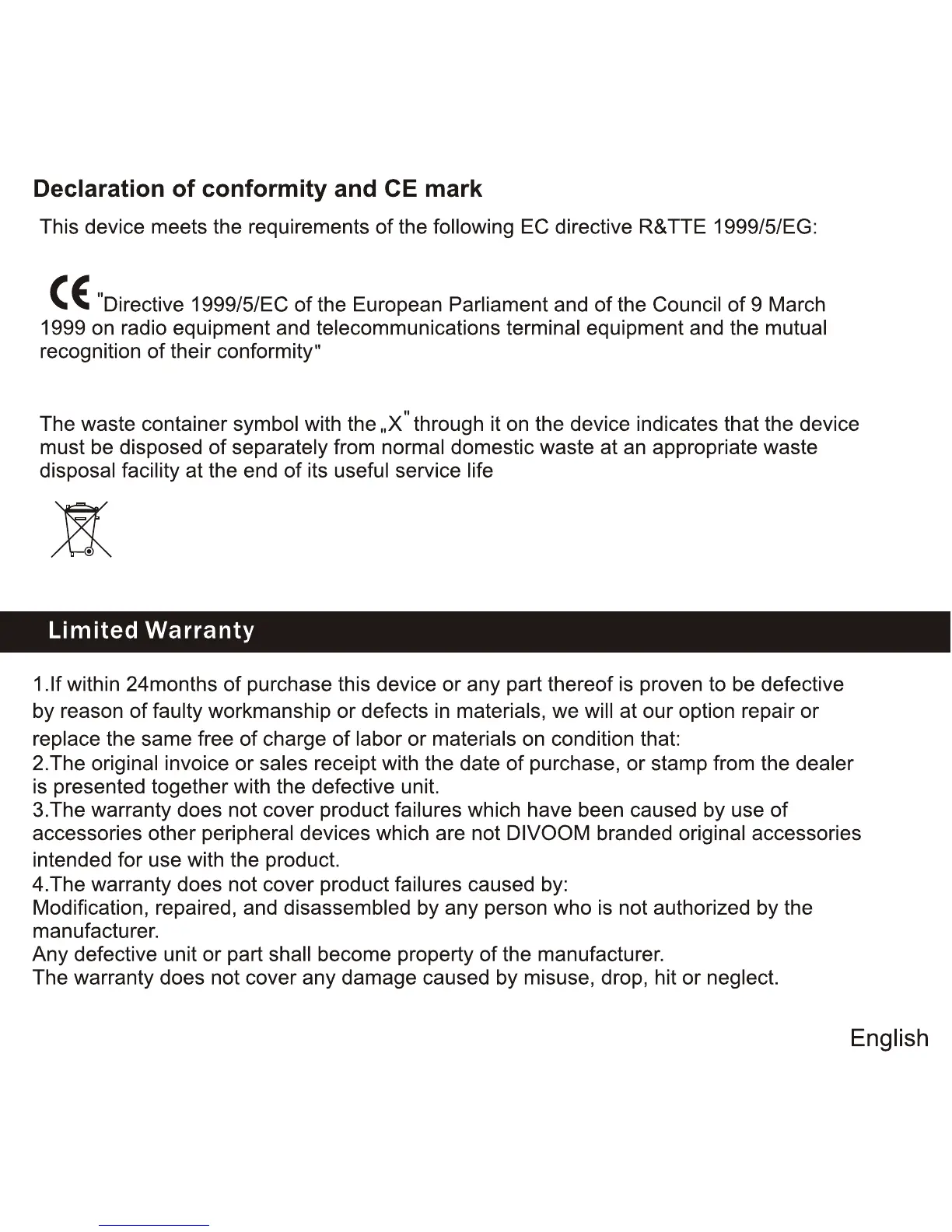 Divoom IFIT-1 - Compliance and CE Marking; Limited Warranty Information