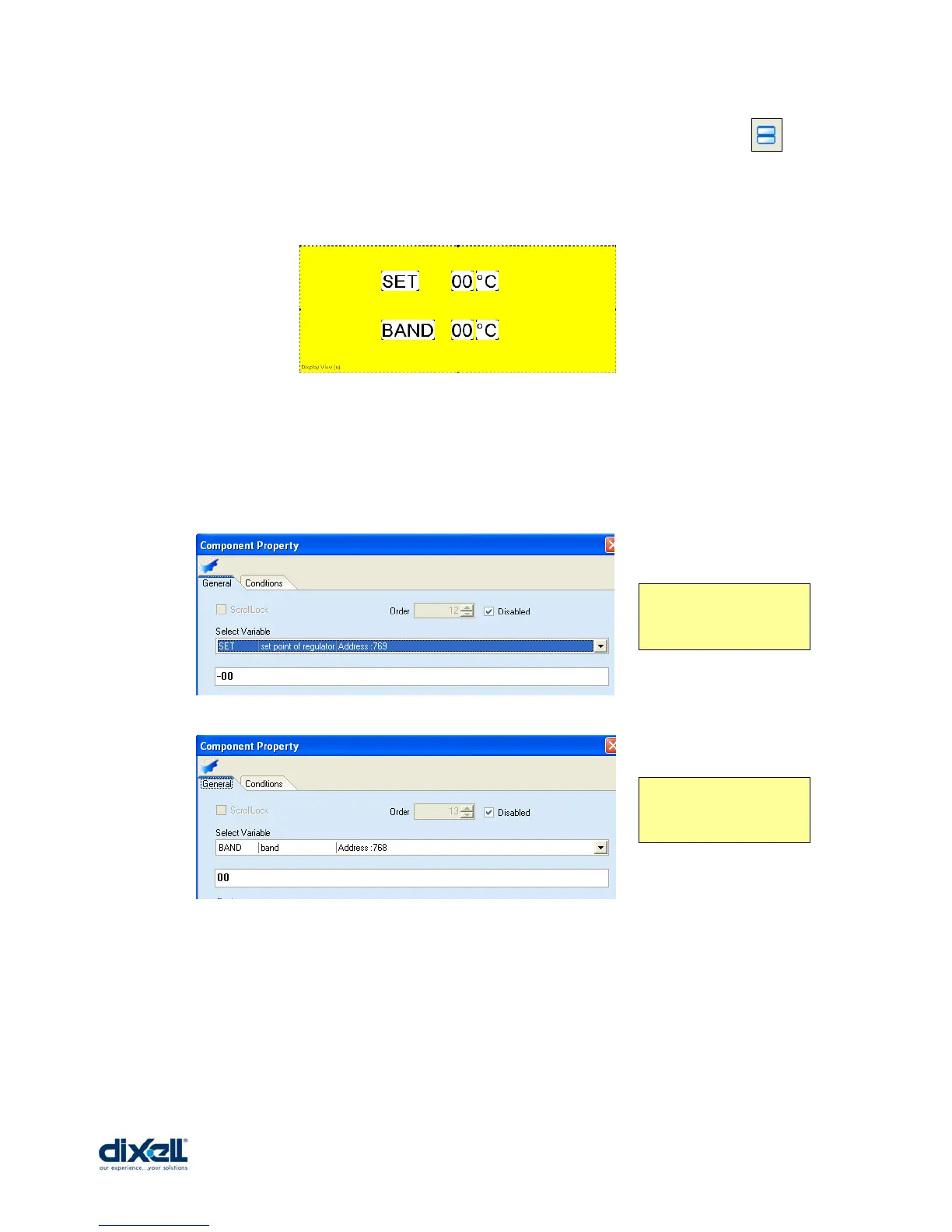 In the picture here above we have added four labels (SET, BAND and °C) and two