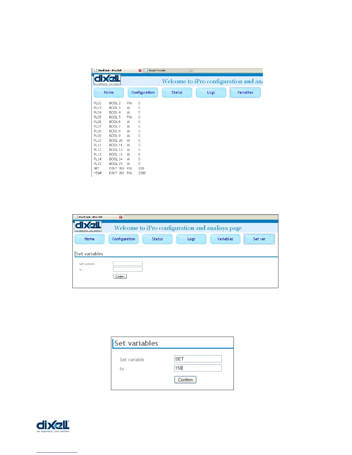 Click on “SET VAR” to change the value of the variables.