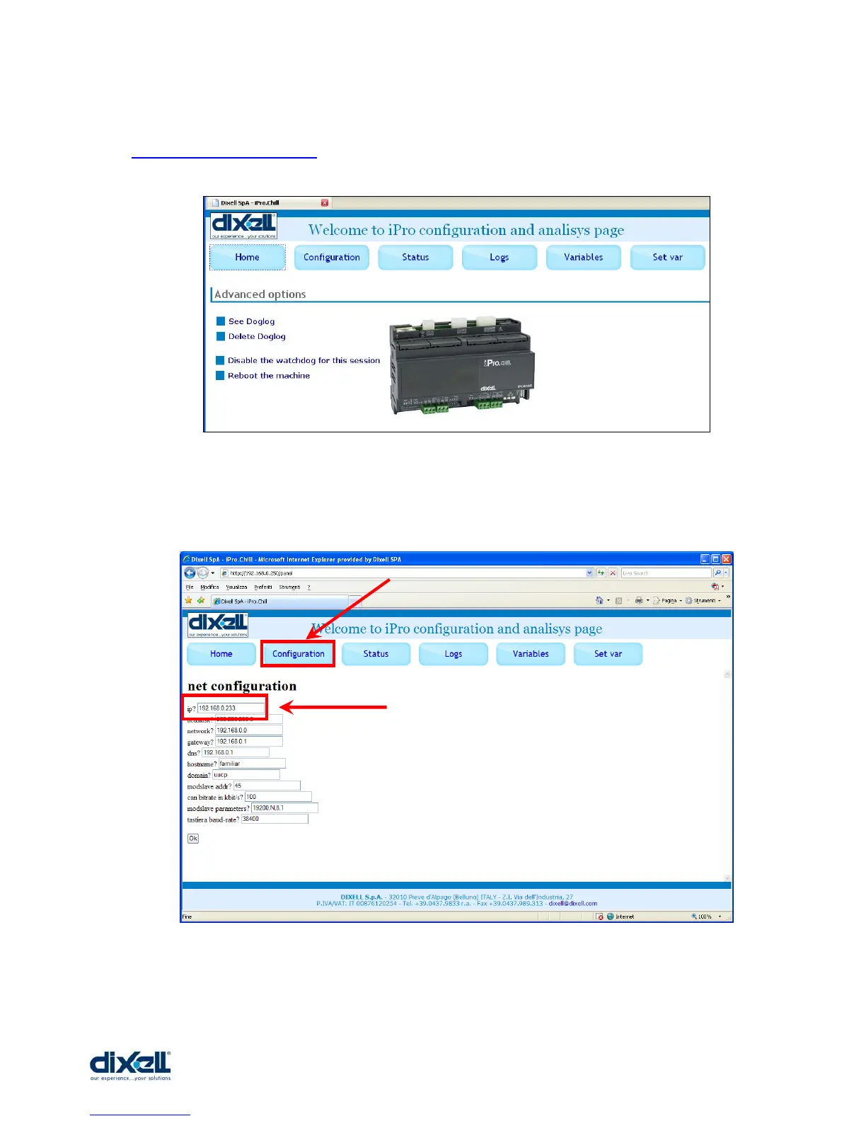 If necessary is possible to change the IP address; click the Configuration button and in the