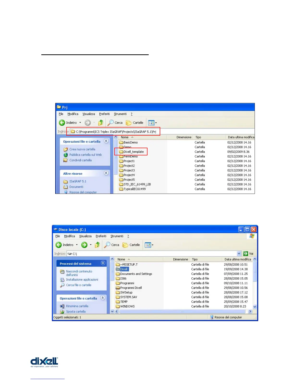 the folder “Dixell_template” as showed here below (you can find and download this folder