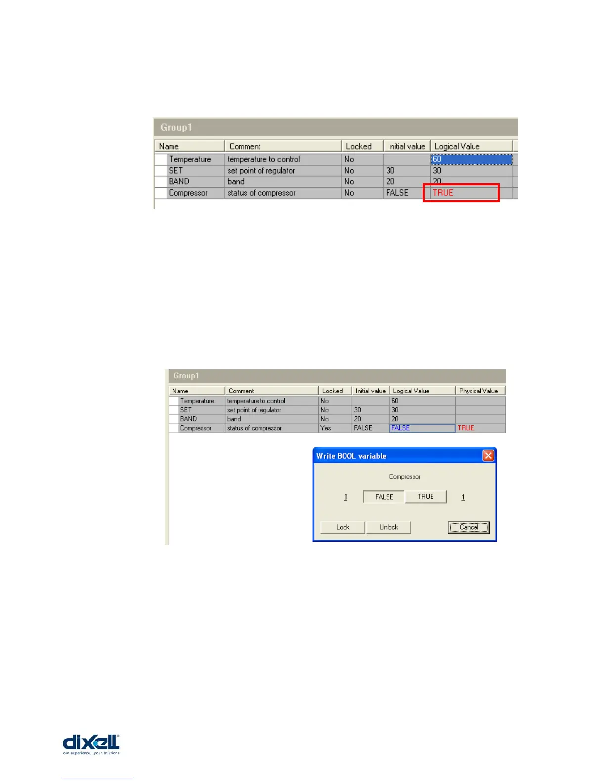 (TRUE) but, due the variable lock as FALSE, the compressor is off. Now you can change all