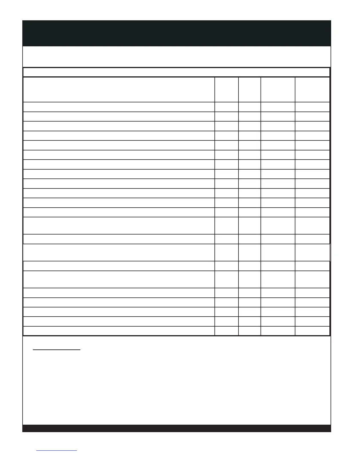 Maintenance should be performed per the requirements in the chart below or as needed.