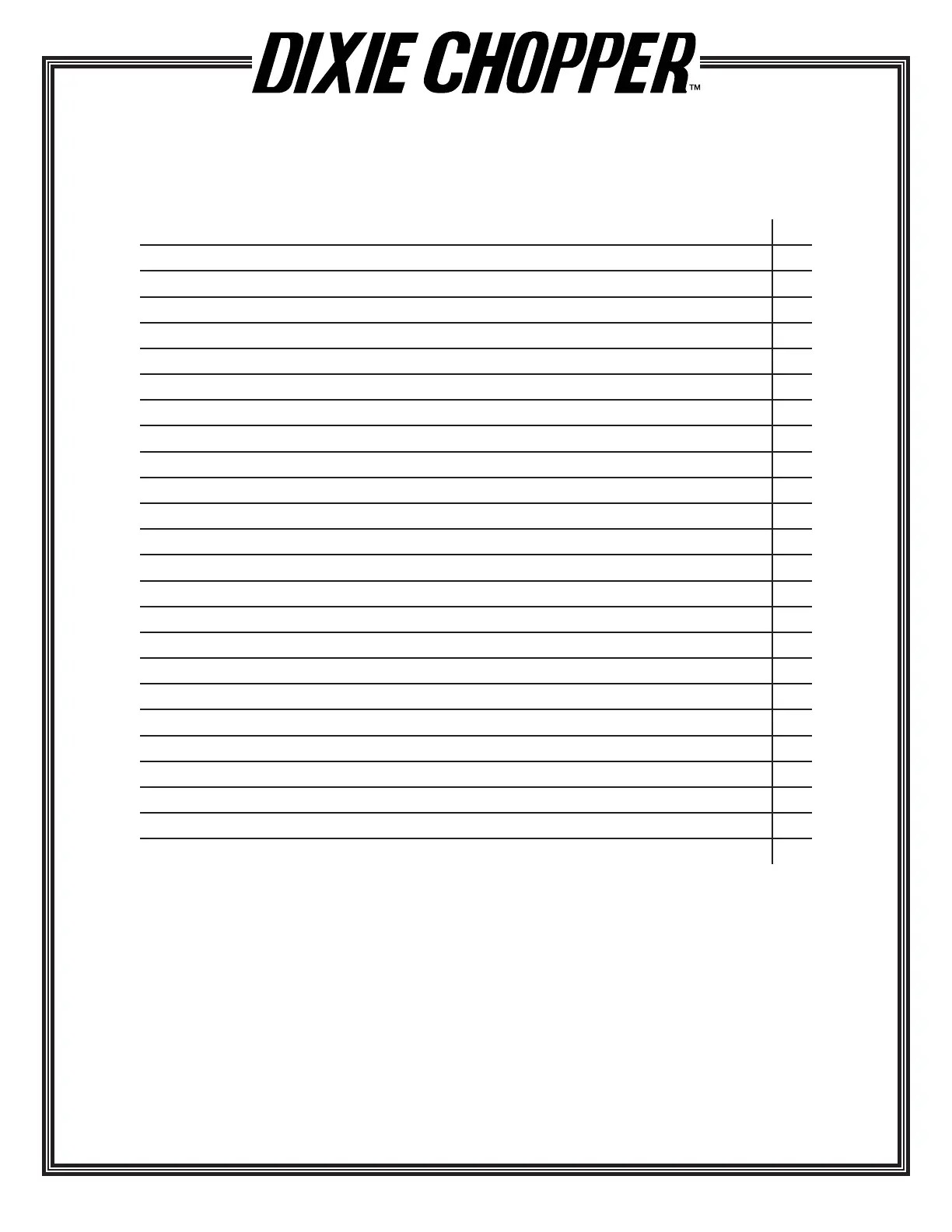 Dixie Chopper XCALIBER 2011 - Table of Contents