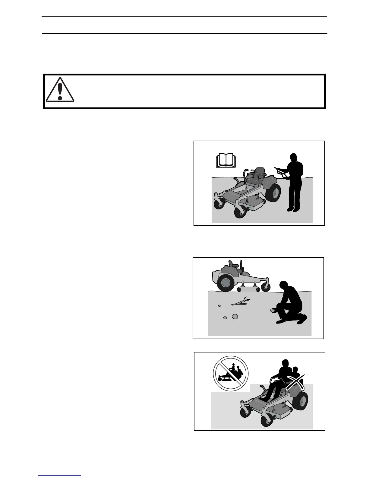 • Do not mow in reverse unless absolutely