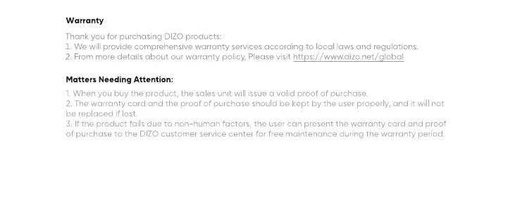 DIZO Watch 2 - Warranty Policy; Matters Needing Attention