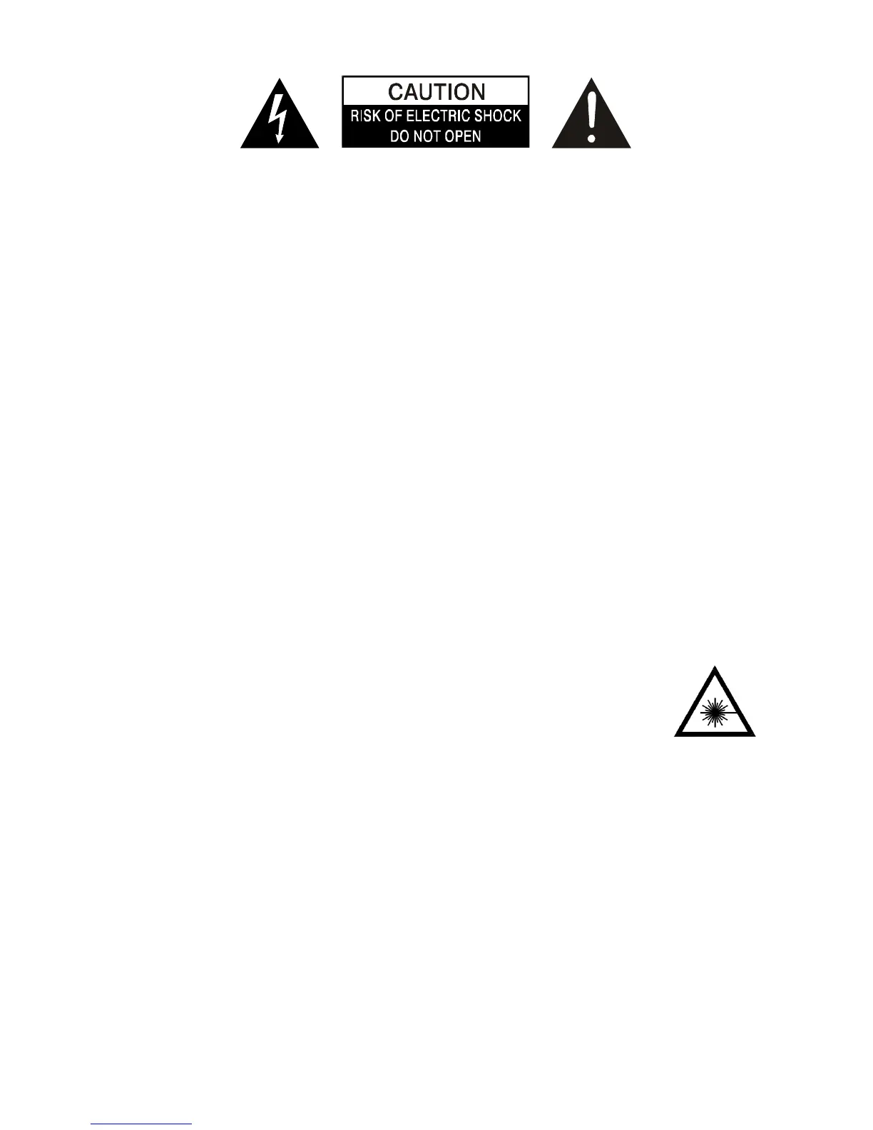 Caution: to prevent the risk of electric shock, don’t remove cover (or back). No user-