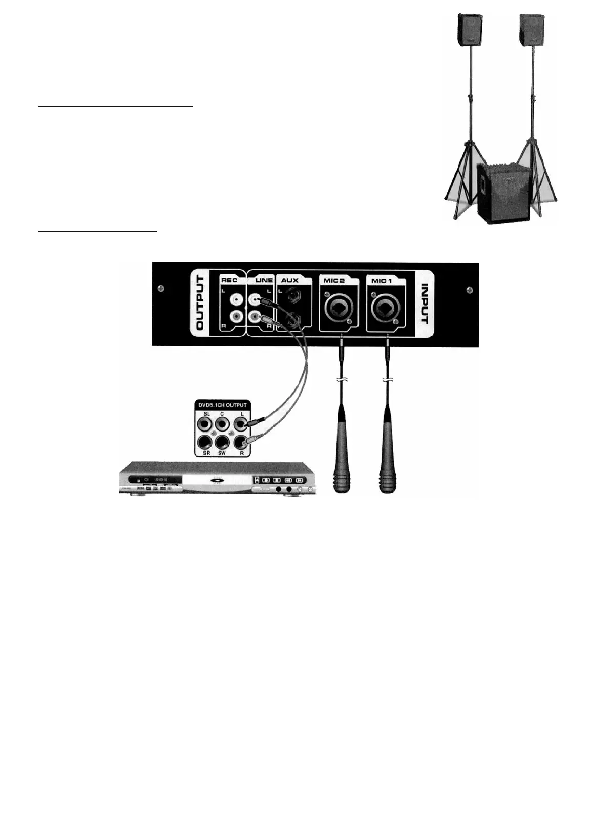 Vous pouvez brancher 2 microphones en même temps ainsi deux entrées ligne stéréo d’un lecteur CD, DVD ou cassette ou tout