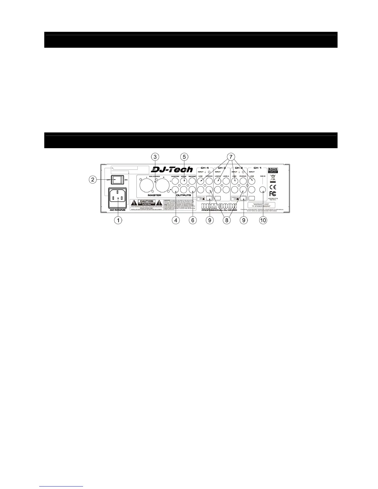 1. Alimentation secteur et porte-fusible. Utiliser le câble d’alimentation fourni pour connecter l’unité à