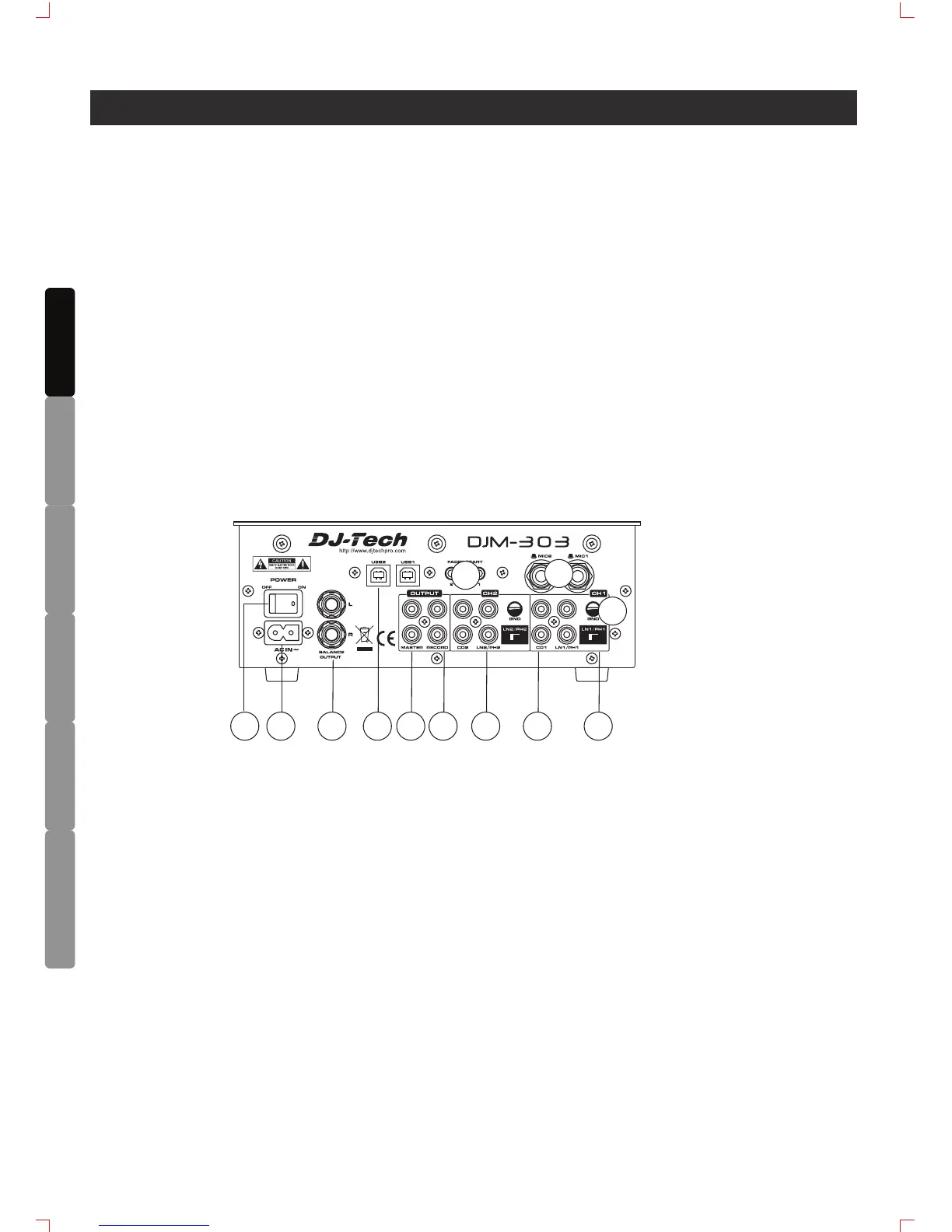 27. Channel Fader - Adjust the volume for CH1 and CH2.