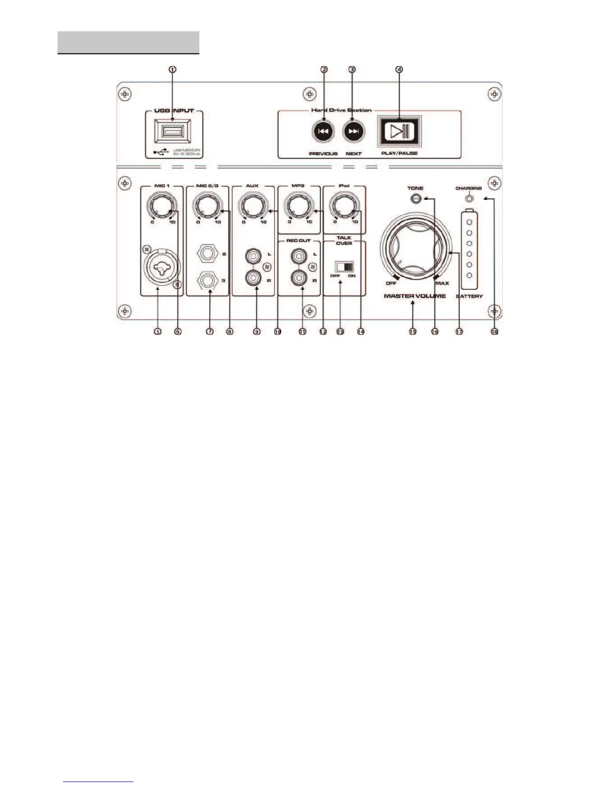 Turn the MIC 2/3 volume knob to adjust the MIC2/3 volume.