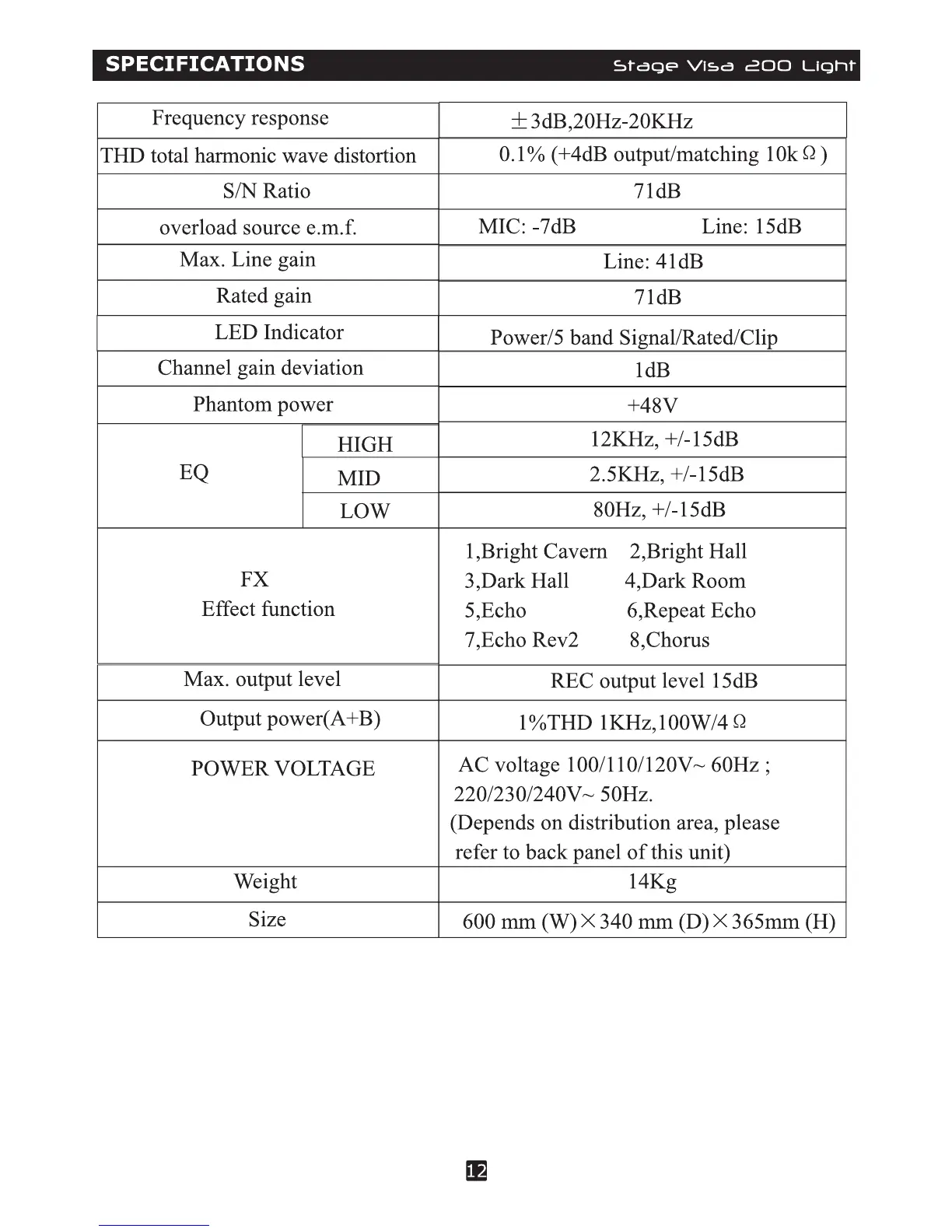 DJ-Tech Stage Visa 200 light - Performance Characteristics; Power, Weight, and Size