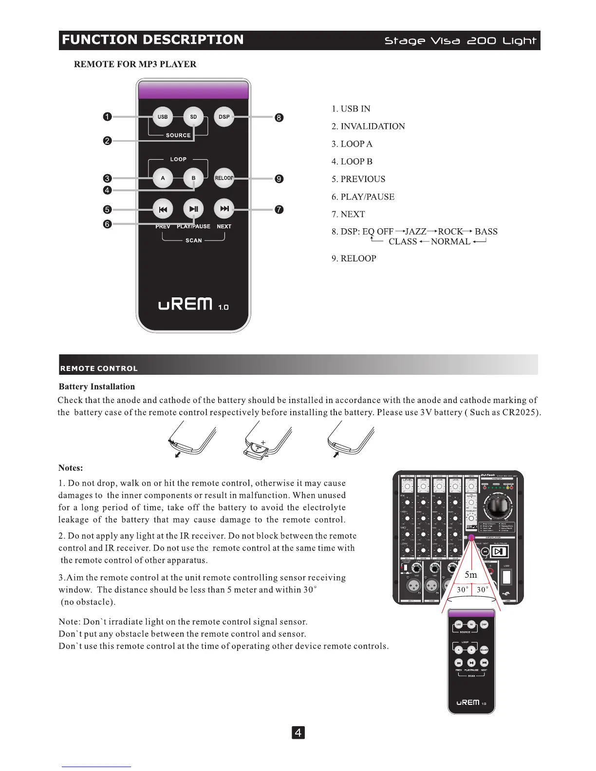 DJ-Tech Stage Visa 200 light - MP3 Player Remote Functions