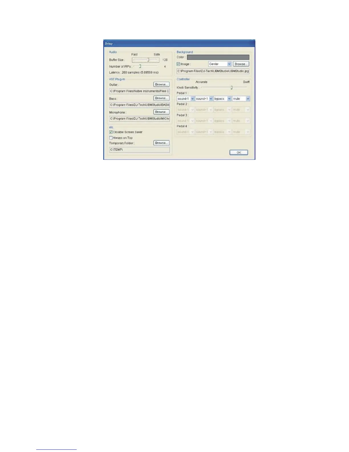 In the setup window it is possible to modify the audio buffer and latency values. A large value will