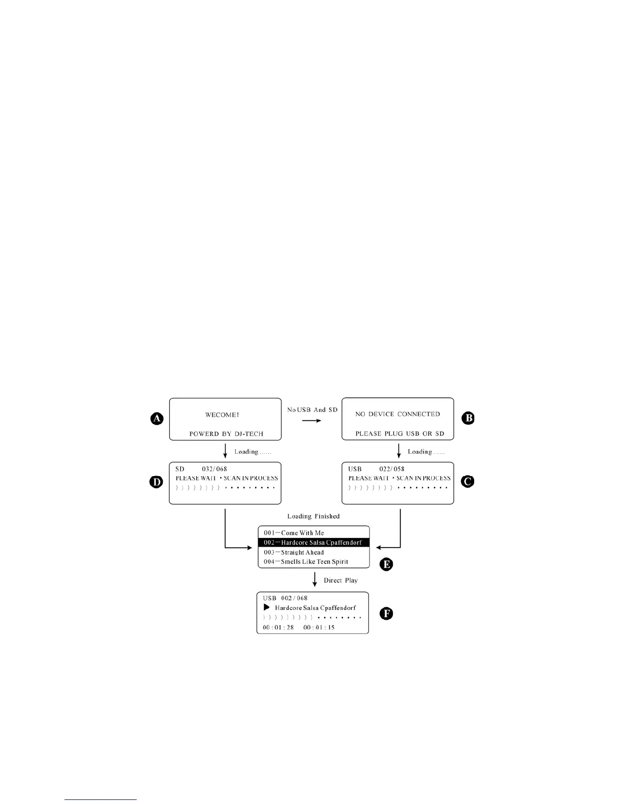 figure B. Si il n’y a aucun fichiers MP3 sur la clé USB ou sur la carte SD l’écran de la figure B affichera