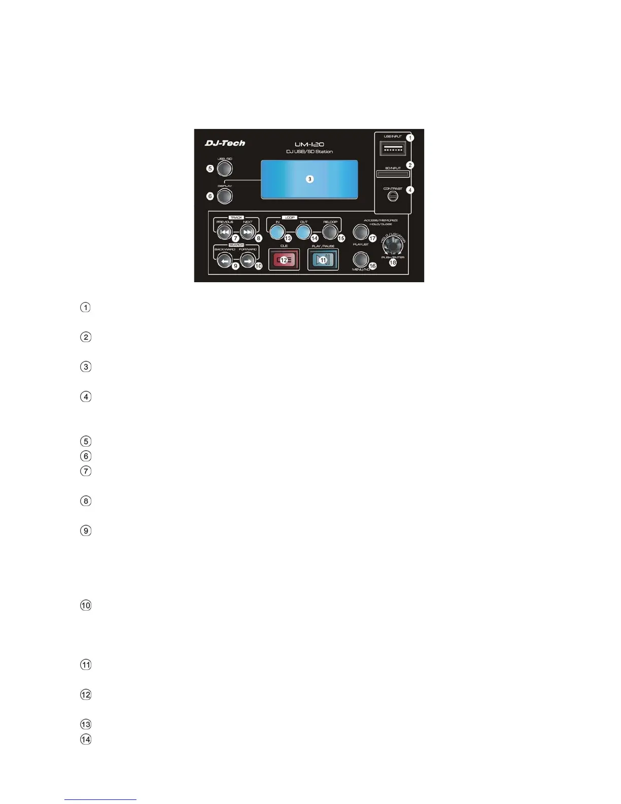 CUE: to play a song which is set the CUE point, if there is no CUE point of a song, the default CUE