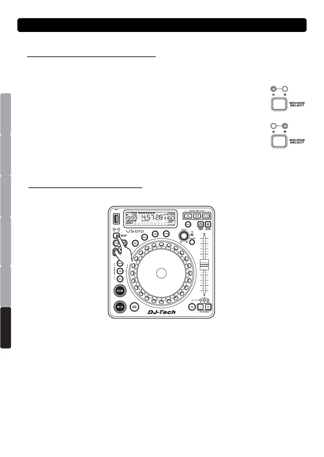 SELECTOR per selezionare USB B come sorgente di riproduzione. Il LED