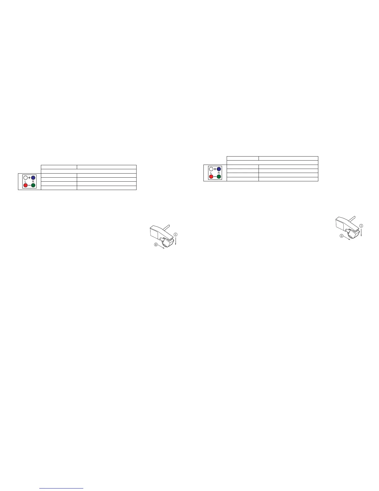 Befestigen Sie ein neues Tonabnehmersystem an der Headshell (7) und beachten Sie dabei die unten dargestellten