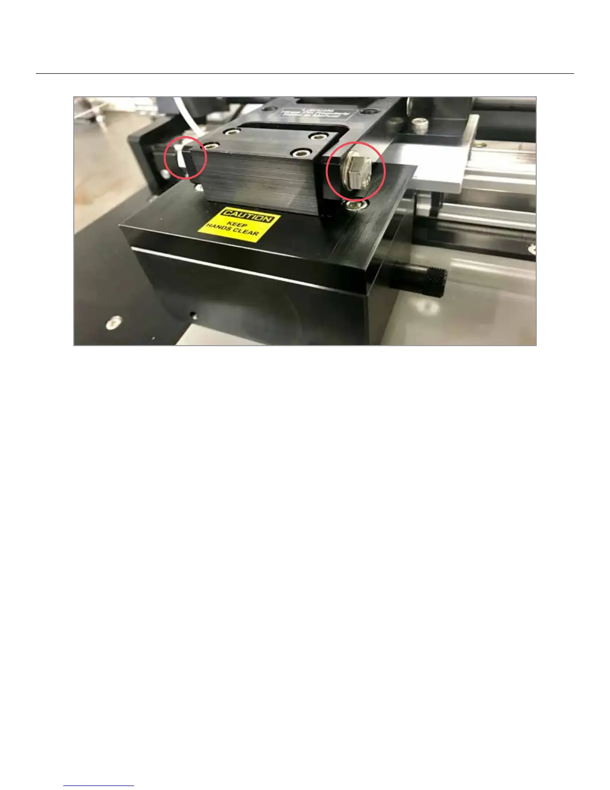 To adjust the rubbing block, remove the MEK Pad (see page 10) and lower the head down onto the sample you