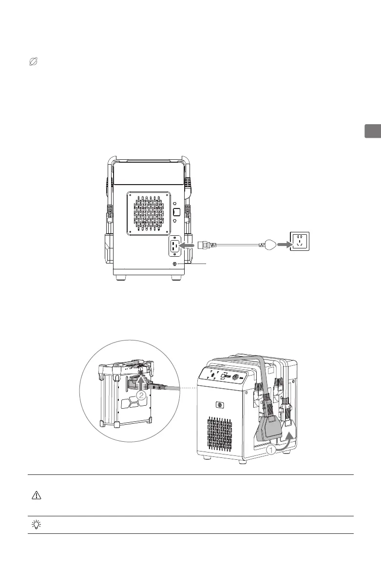 使用前请确认通过接地线将充电器外壳接地,并严格按照说明使用。充电器最多可连接 4 块电池,