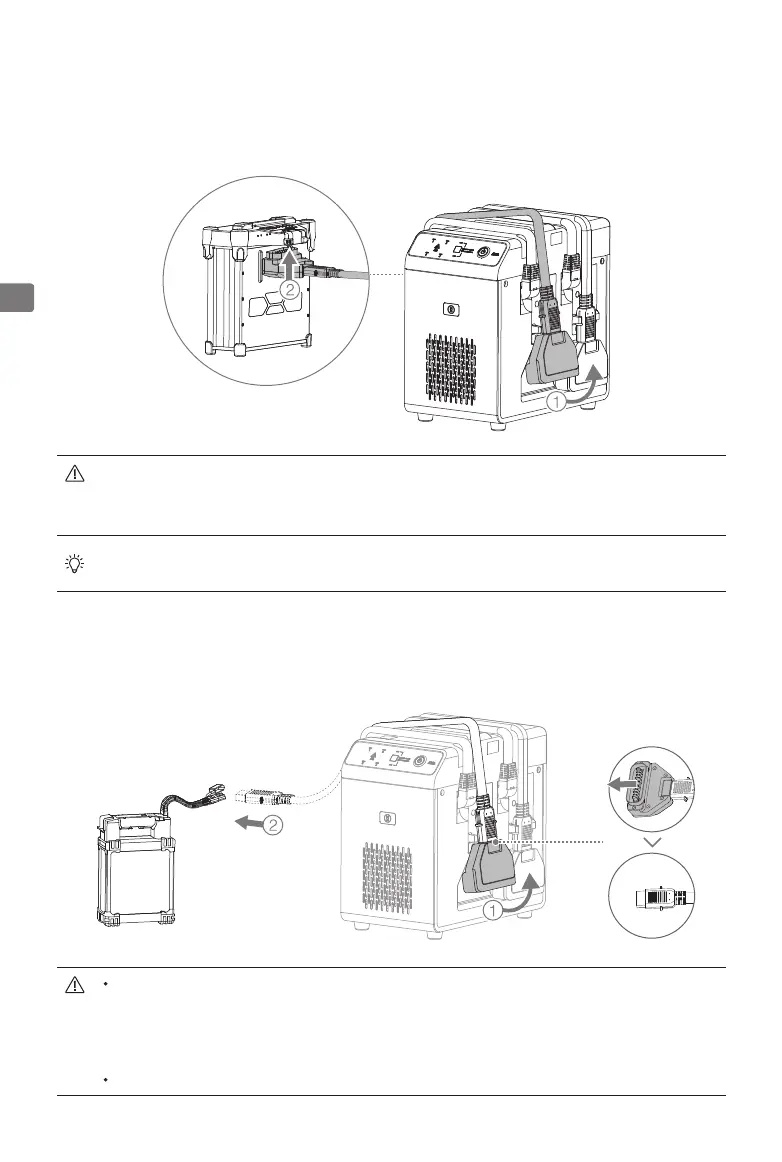 充電バッテリーは、必ず、充電ケーブルをバッテリー充電器に固定したのと同じ側に置い