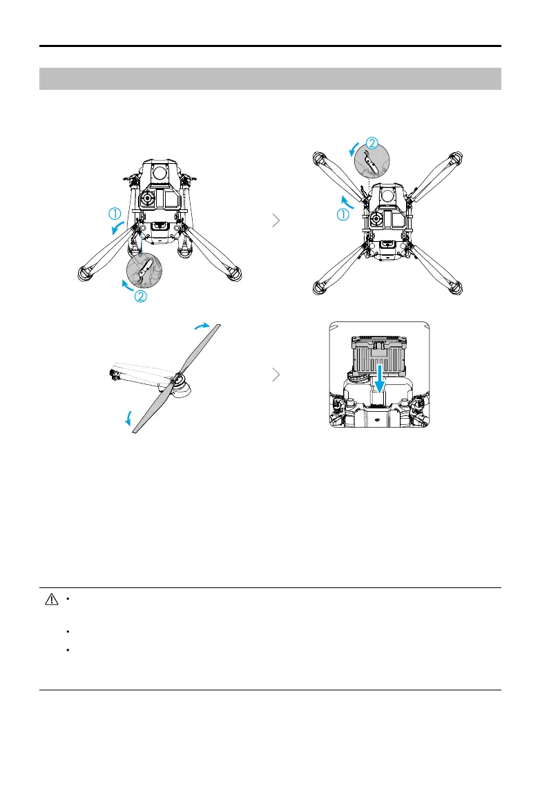 2. Unfold the M1 and M2 arms, and fasten the two arm locks. Avoid pinching fingers.