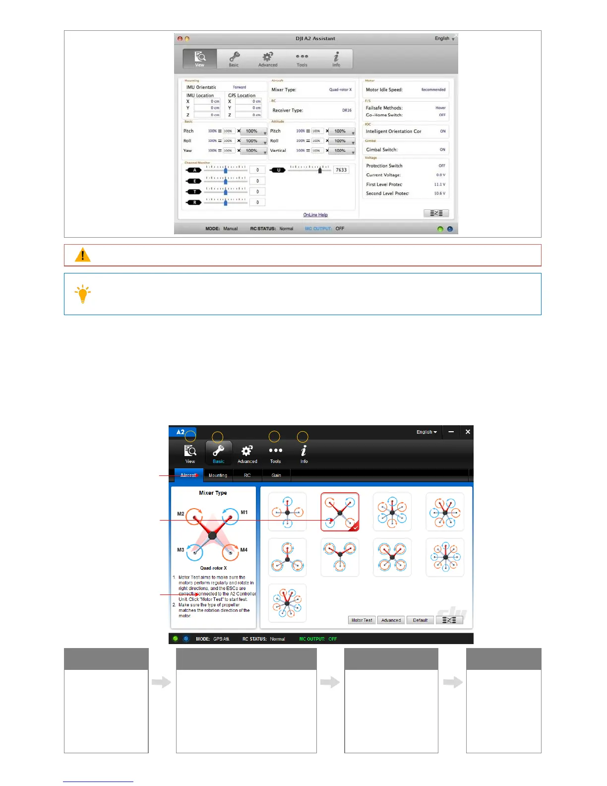 A2 flight control system can takes power via the USB port during configuration, no additional battery is required.