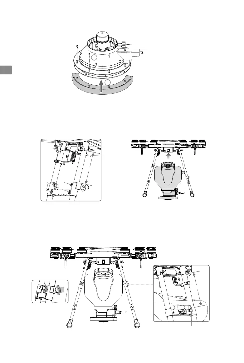 的固定片与起落架上的安装孔对齐,拧紧 2 颗 M3×12 螺丝和 1 颗 M3×10 (Plus) 螺丝。