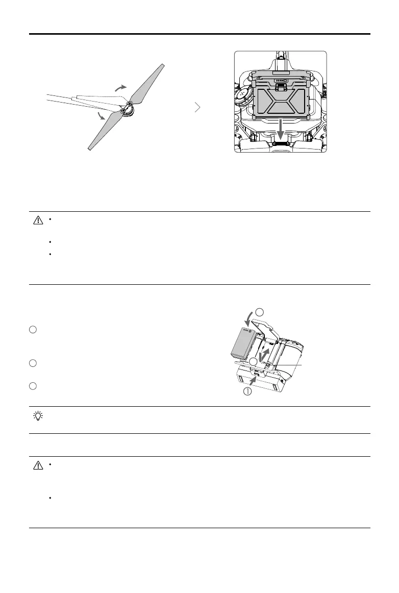Unfold the propeller blades. Insert the Intelligent Flight Battery