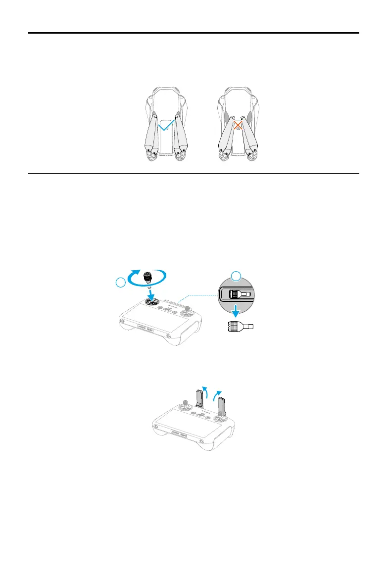 • Make sure to place the propellers of the front arms into the two dents on both sides of