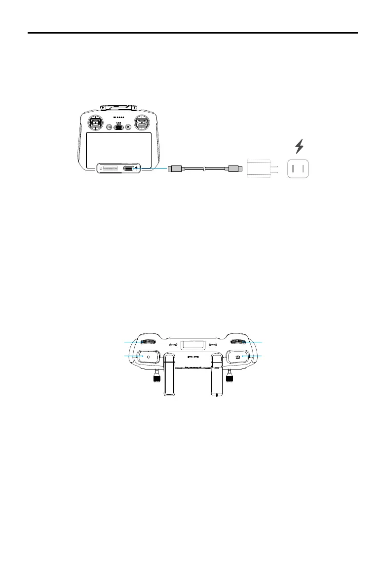 Connect a charger to the USB-C port on the remote controller. It takes approximately 1 hour