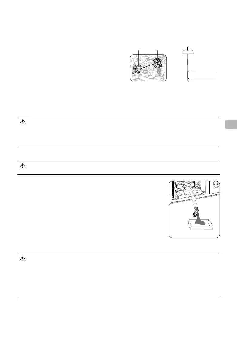 3. Saque la manguera de drenaje del aceite del motor y gire el tapón de esta