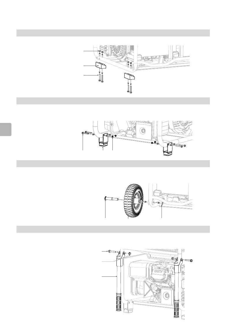 Alinhe os orifícios de montagem aos pés de apoio com os da estrutura do gerador. Insira os parafusos nos