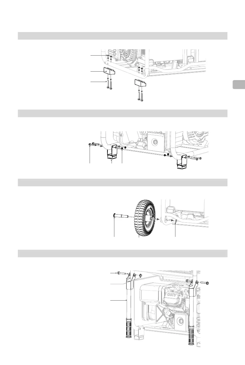 핸들을 발전기 프레임의 마운트 구멍에 맞추고 마운트 구멍에 볼트를 삽입한 다음 너트로 고정합니다.