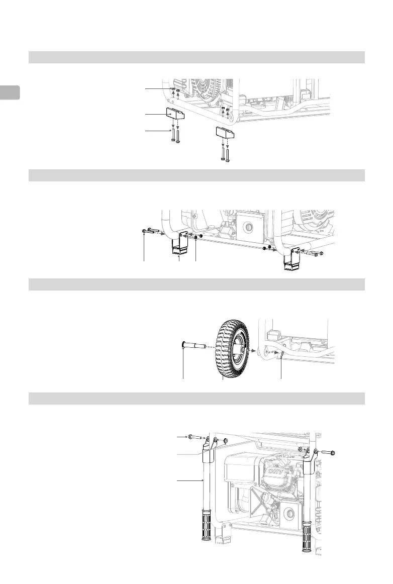 Align the mounting holes on the supporting feet with those on the generator frame. Insert the bolts through the